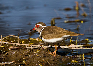 While visiting the Lichtenburg Game Breeding Centre this morning; in search of more migrants, my attention was drawn to the Three-banded Plover pecking and probing in mud with rapid jabs. A common resident in Southern Africa and very colourful.